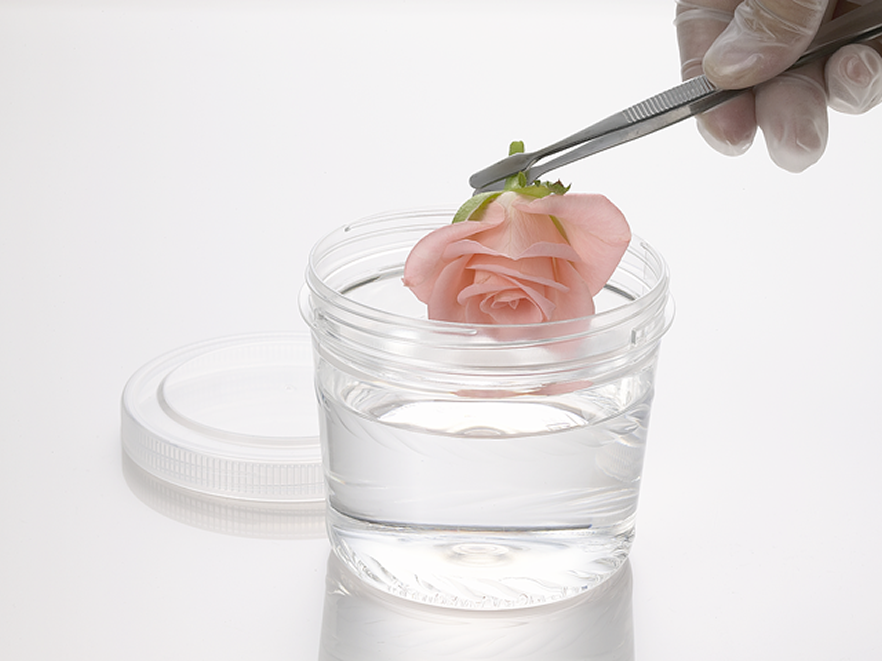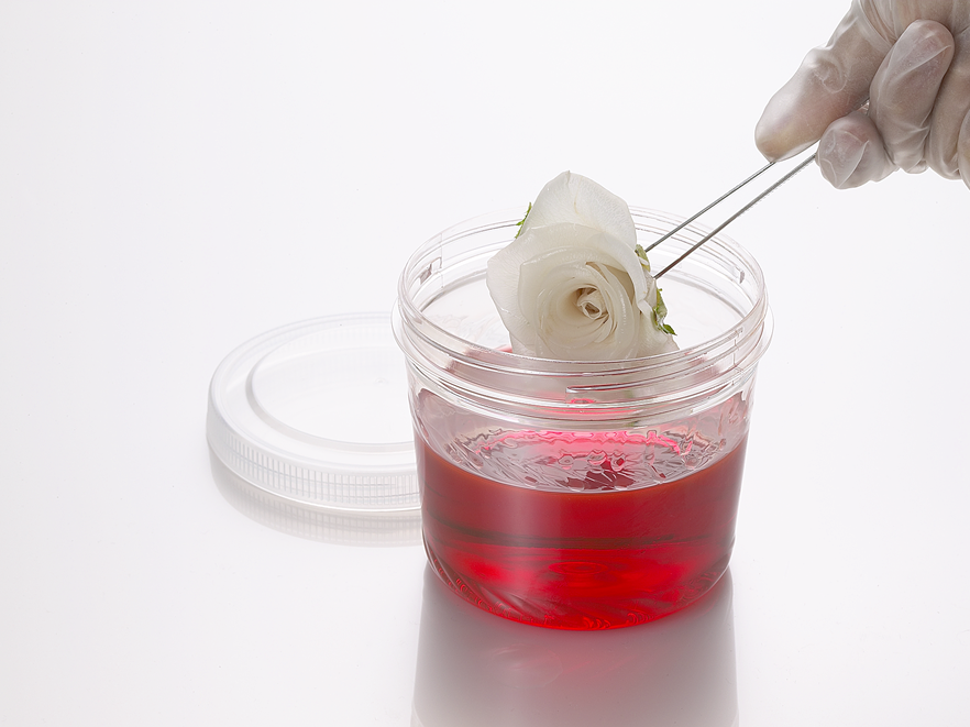 お花が浸かるくらいのA液を容器に入れ、お花を静かに入れます。